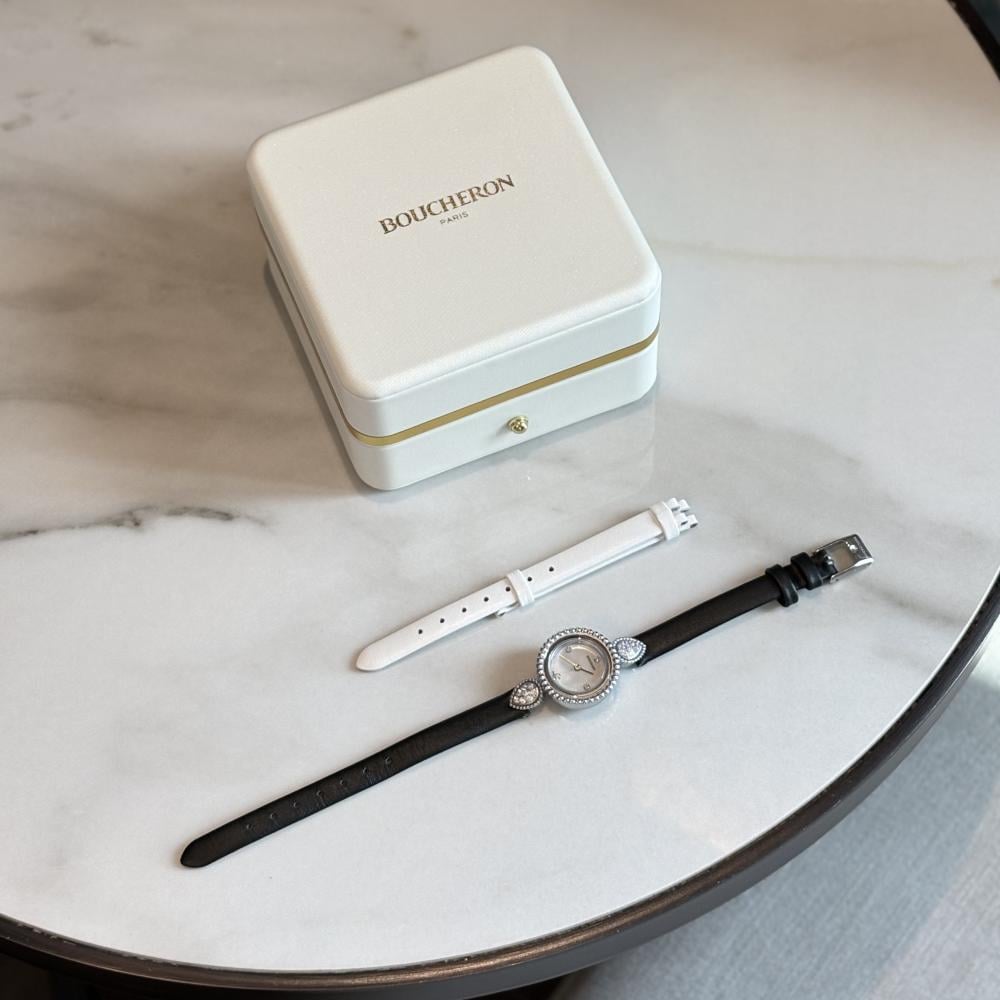 ساعه بوشرون مع سترابين ابيض _ اسود