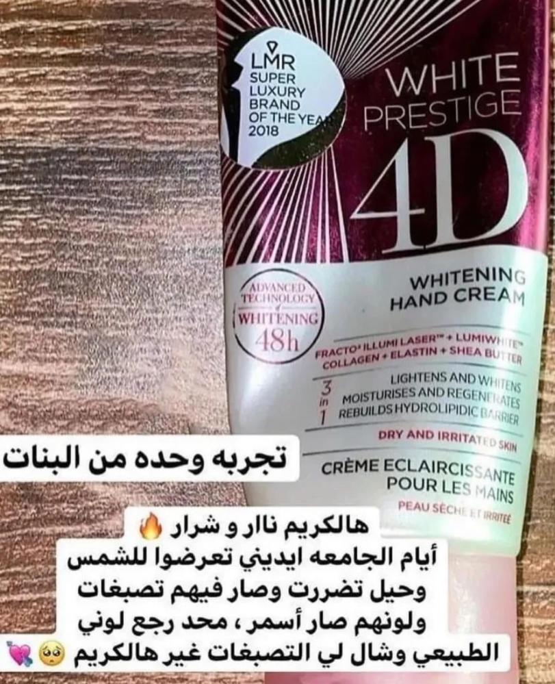- كريم تفتيح اليدين المغذي والمرمم مع مركب التفتيح الفريد "لومي سكين 4دي" قادر على تقليل التصبغات وتخفيف مظهرها.